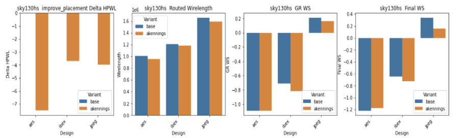 OpenROAD™ added a new detailed placement optimizer based on research from Prof. Andrew Kennings at the University of Waterloo. The goal is to further improve the quality of detailed placement through an iterative standard cell move and swap based algorithm that optimizes wirelength. Results show early improvement in wirelength and worst case slack as seen in three design test cases using skywater130hs.
