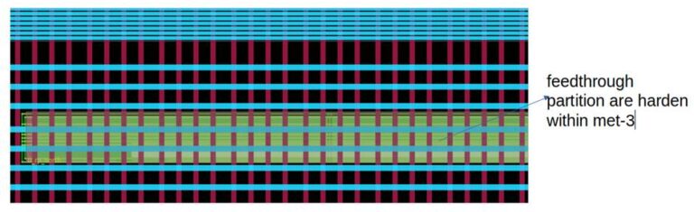 Step-3:Ensure that feedthrough partition is hardened within met-3 so that this will not create a blockage for top-level met-l4 and met-5 power stripes routing.
